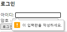 - 해당 입력 필드(form data)의 값을 서버로 전송 전, 필수로 입력 받게 하기 위한 장치