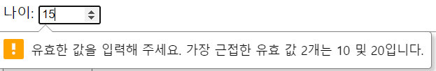 - 증감 범위 지정 시 해당 범위 외에 값은 입력 불가하다. (ex. step=”10”일 경우, 23, 35 입력 불가)