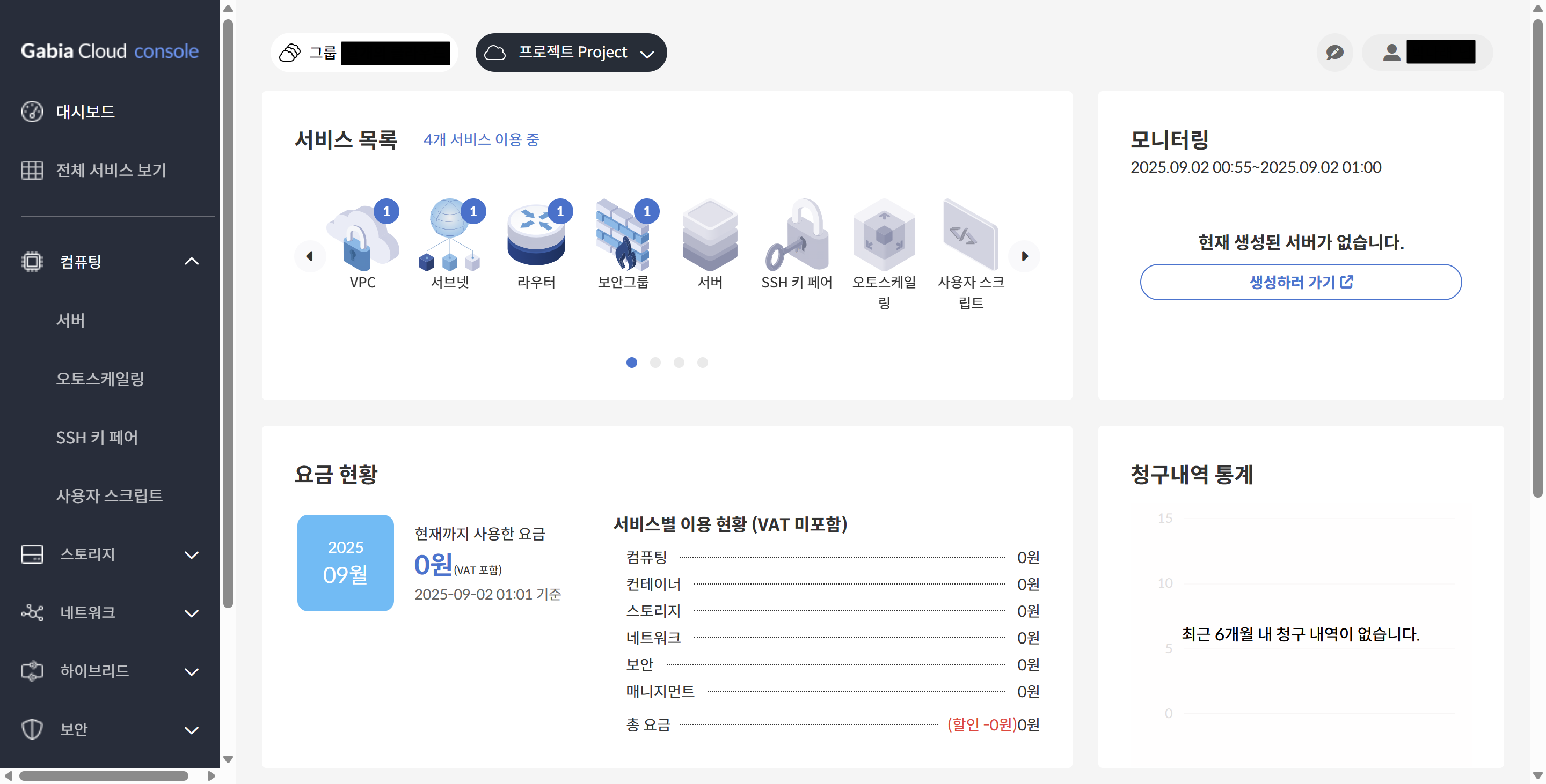다음 포스팅에서는 가비아 클라우드 관리 콘솔에서 서버를 생성하는 과정을 기록할 예정!