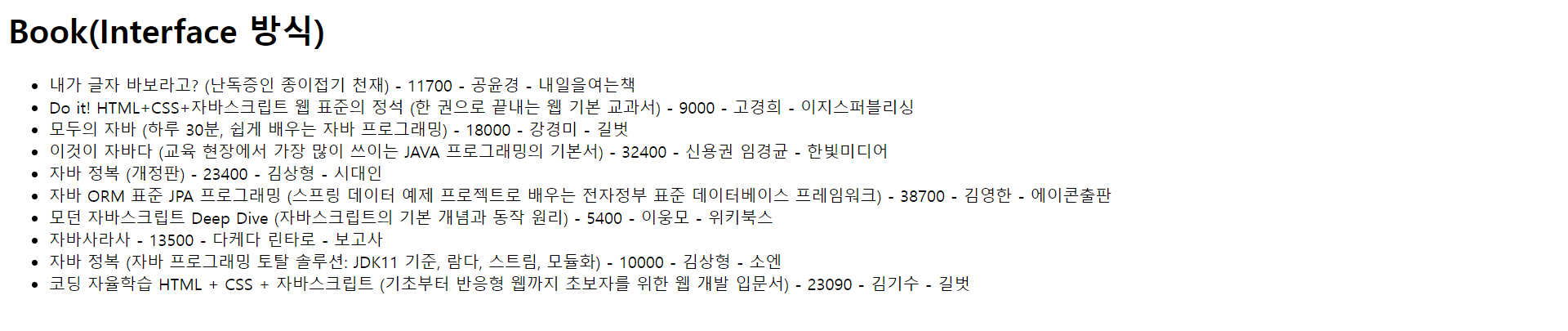 <h1>Book(Interface 방식)</h1>