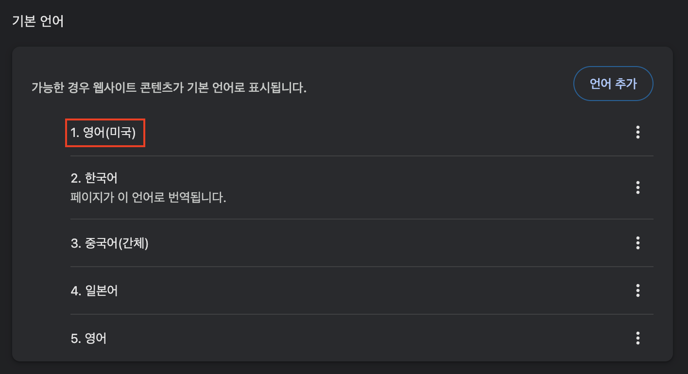 9. 브라우저 설정 → 언어 → 영어(미국) 설정