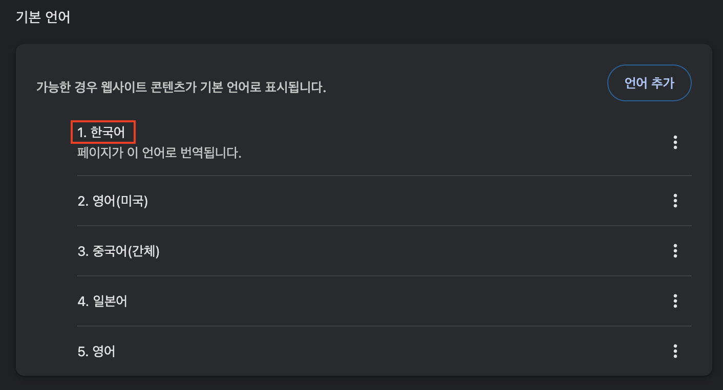 8. 브라우저 설정 → 언어 → 한국어 설정