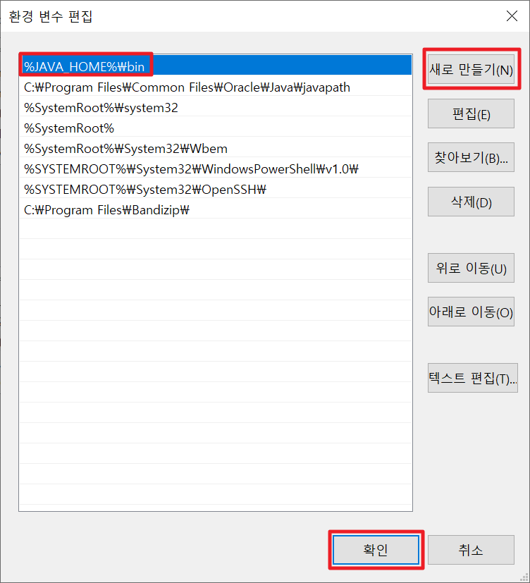 3) 아래 경로 or 문구(%JAVA_HOME%\bin)중 아무거나 입력