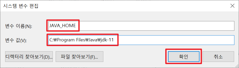 : Java가 있는 곳 → C:\Program Files\Java\jdk-11