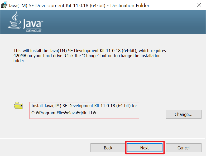 3. 설치되는 경로 확인 후 Next (경로는 건들지 말 것! 그래야 추후 경로 설정할때도 편하다.)