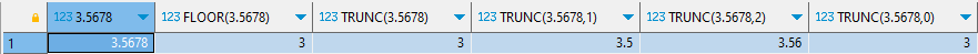 - trunc(컬럼명, 소수 이하 자릿수) : 실수 반환